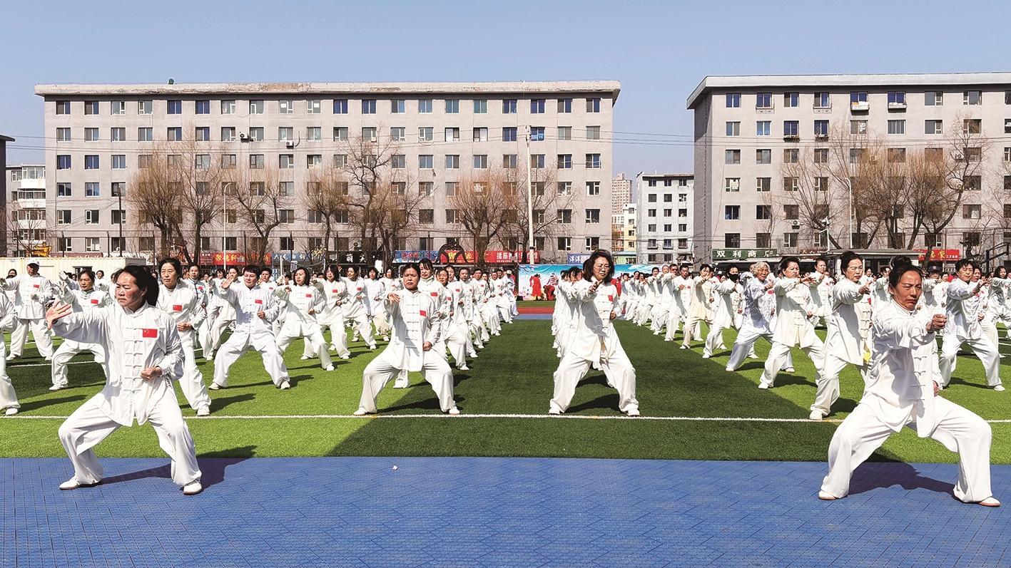 3月21日,恰逢首个“国际太极拳日”。当天上午,白山市老年人体育协会组织近千名太极拳爱好者举办展演活动,展示太极与健身的魅力。 金泽文 摄
