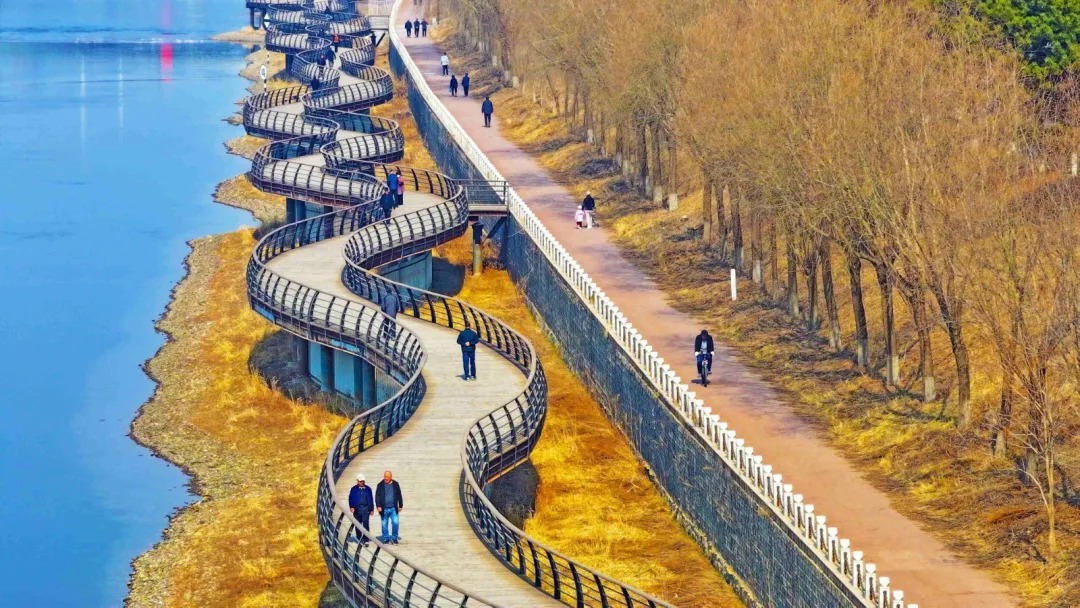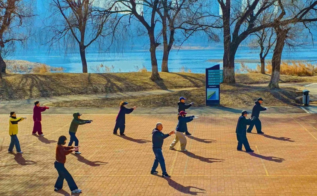春日清晨,在百里松花江畔,吉林市市民们或舒展身姿打太极,或慢跑、骑行享晨光,在水清景秀的景致中,尽显生活惬意。