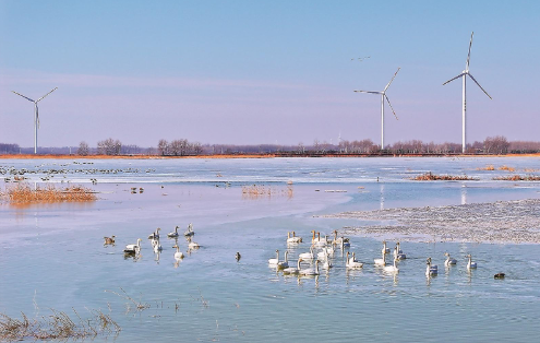 国家能源集团吉林双辽公司新能源基地成为候鸟迁徙的天然驿站,每年三四月份,此处的湿地都会迎来数千只候鸟栖息觅食。 本报记者 李姣月 摄