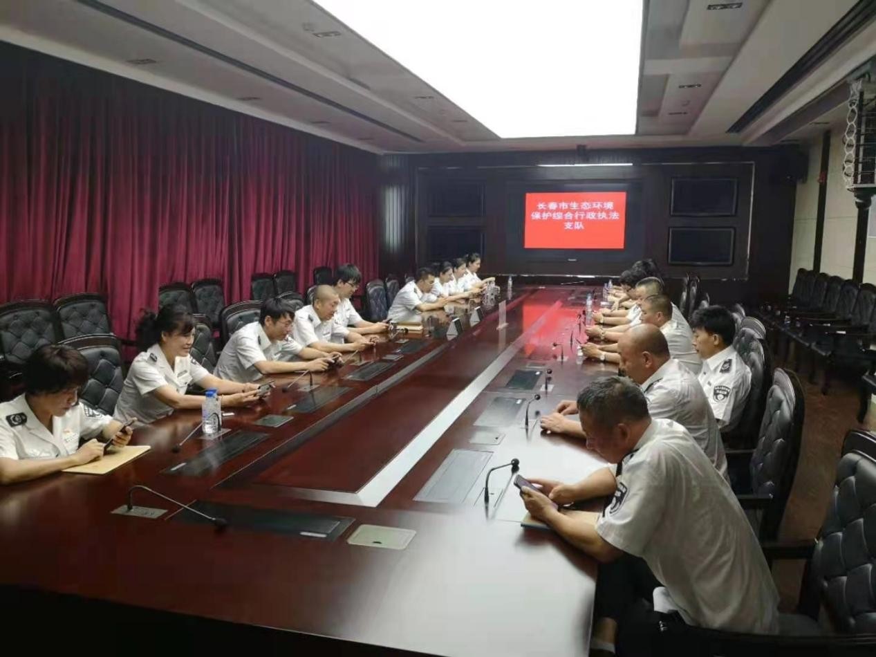 (上图为长春市生态环境保护综合行政执法支队中层以上干部在进行网上学习)