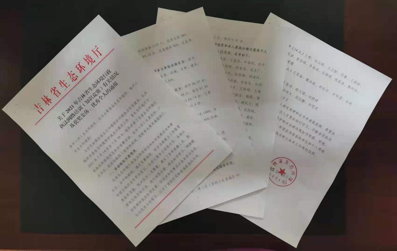 网络培训和竞赛的内容涵盖了《行政处罚法》、《固废法》等生态环境相关的法律法规和吉林省地方性法规、规章标准及规范性文件。培训的竞赛的人员范围涵盖省、市、县三级生态环境部门和执法机构的所有在编在岗执法人员,共计1355人,参与率达99%。省厅对培训和竞赛综合成绩优异的四平市、长春市、松原市、梅河口市及151名执法人员给予通报表扬和表彰。
