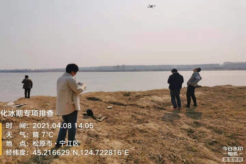 松原市生态环境局用“千里眼”助力“清河”开展化冰期陆空双巡查