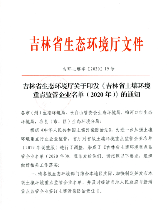 欧美av 关于印发《吉林省土壤环境重点监管企业名单(2020年)》的通知